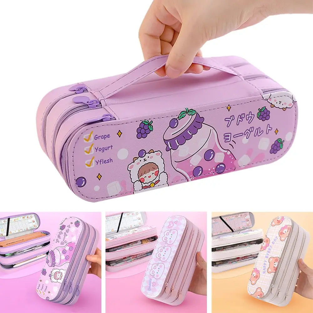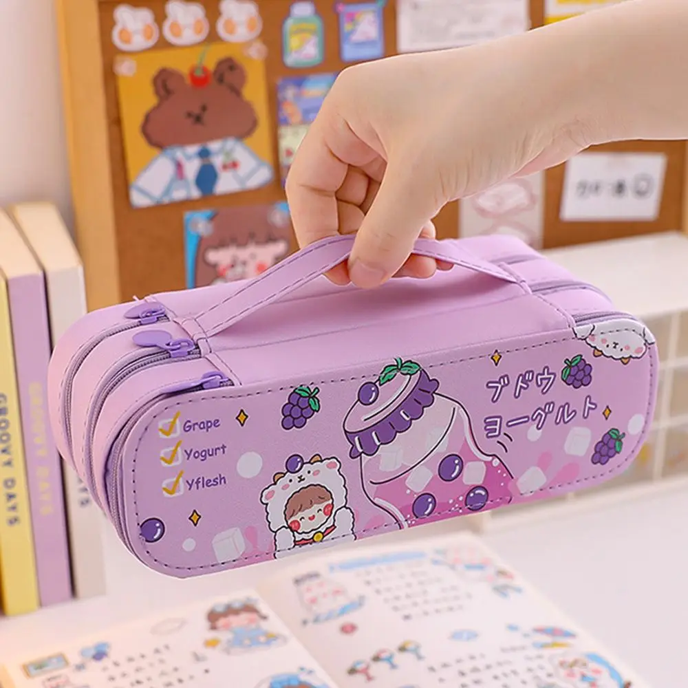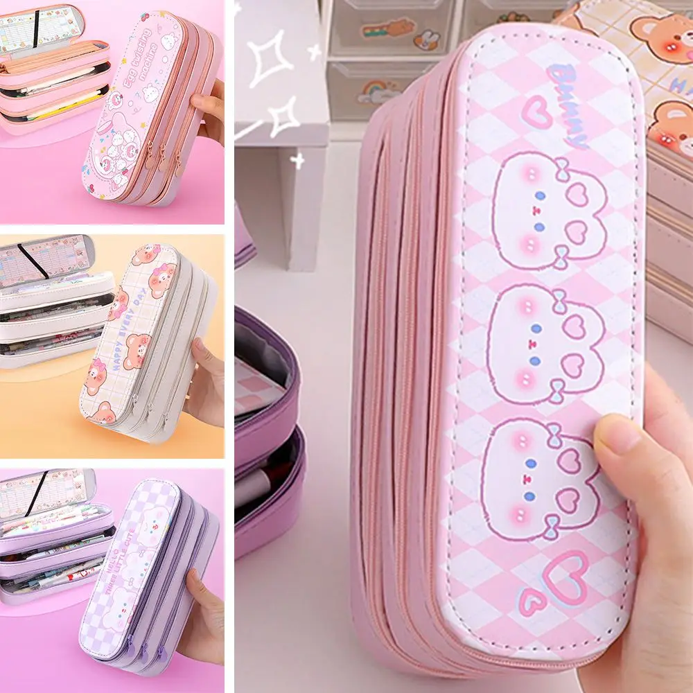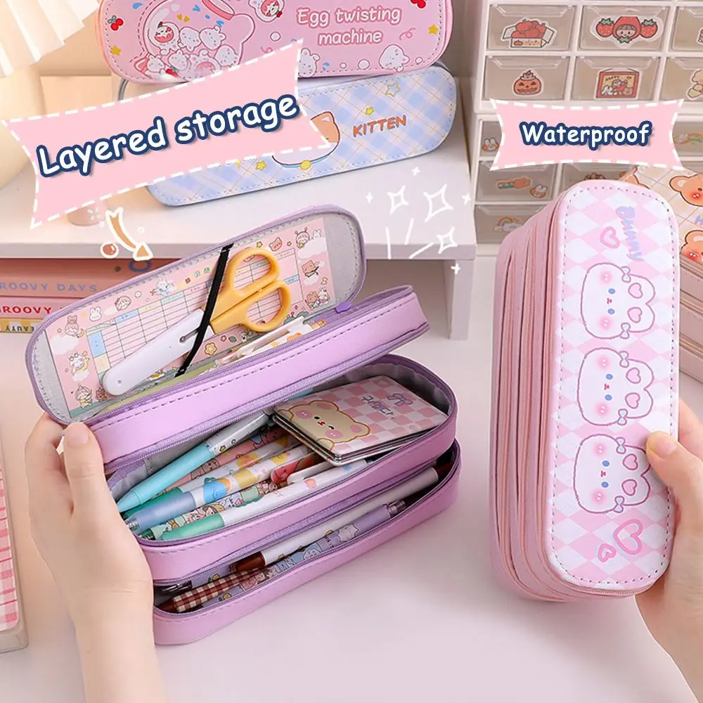 Double Layer Pencil Case With Large Capacity And Simple Girl Heart Pencil Case Stationery