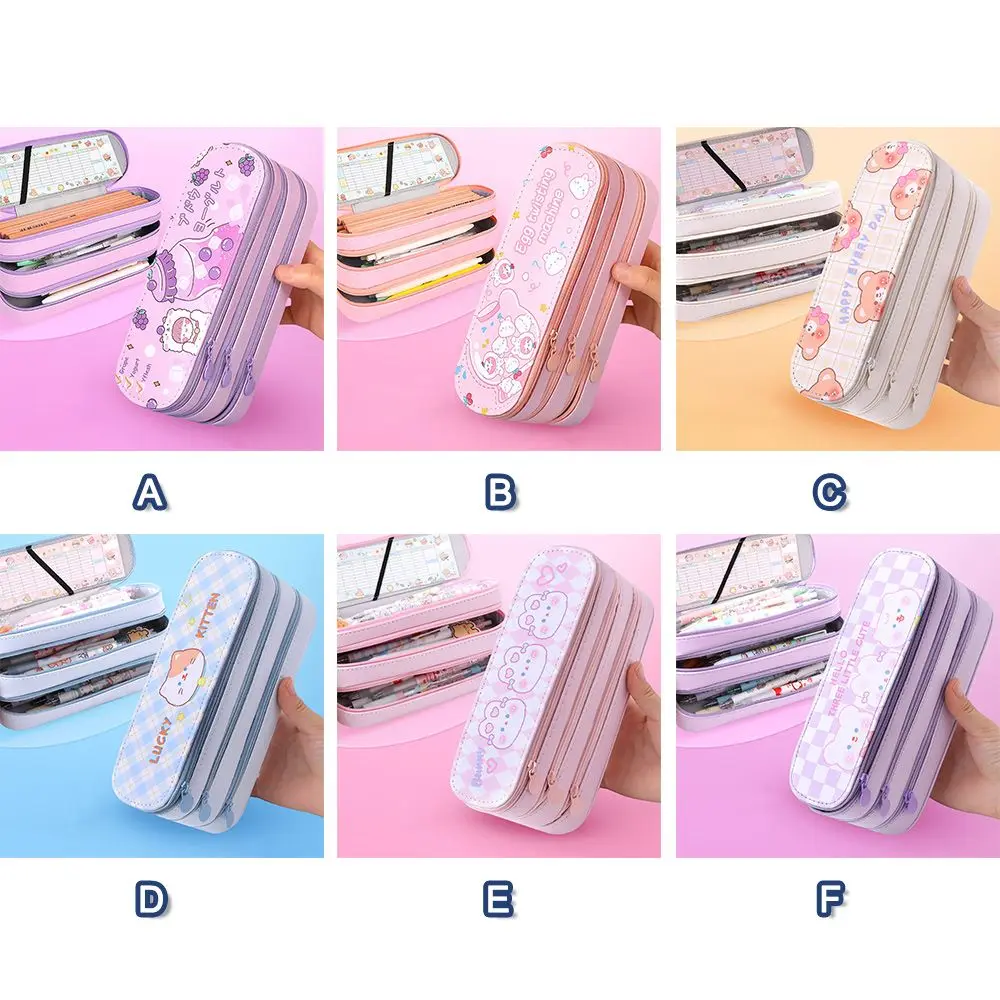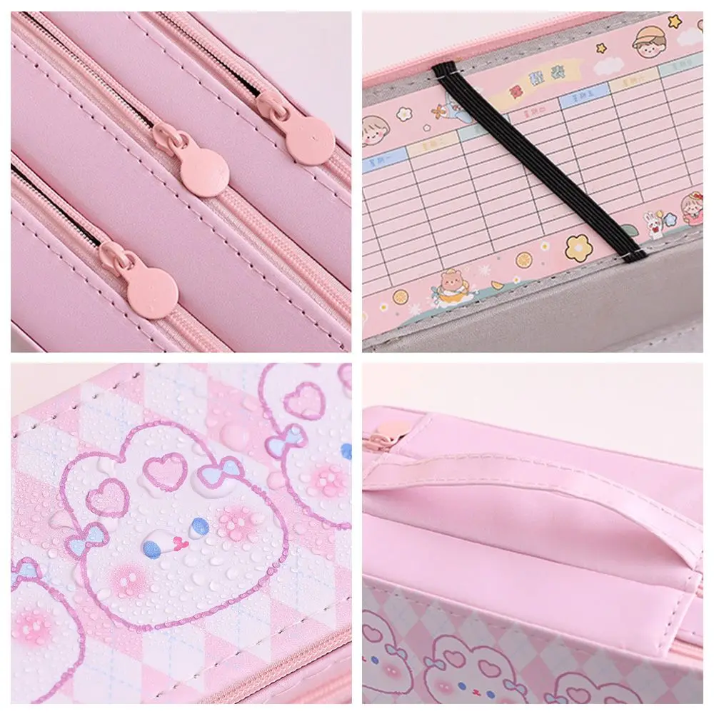 B: Three layer pen box - pink cherry with multiple rabbit heads,