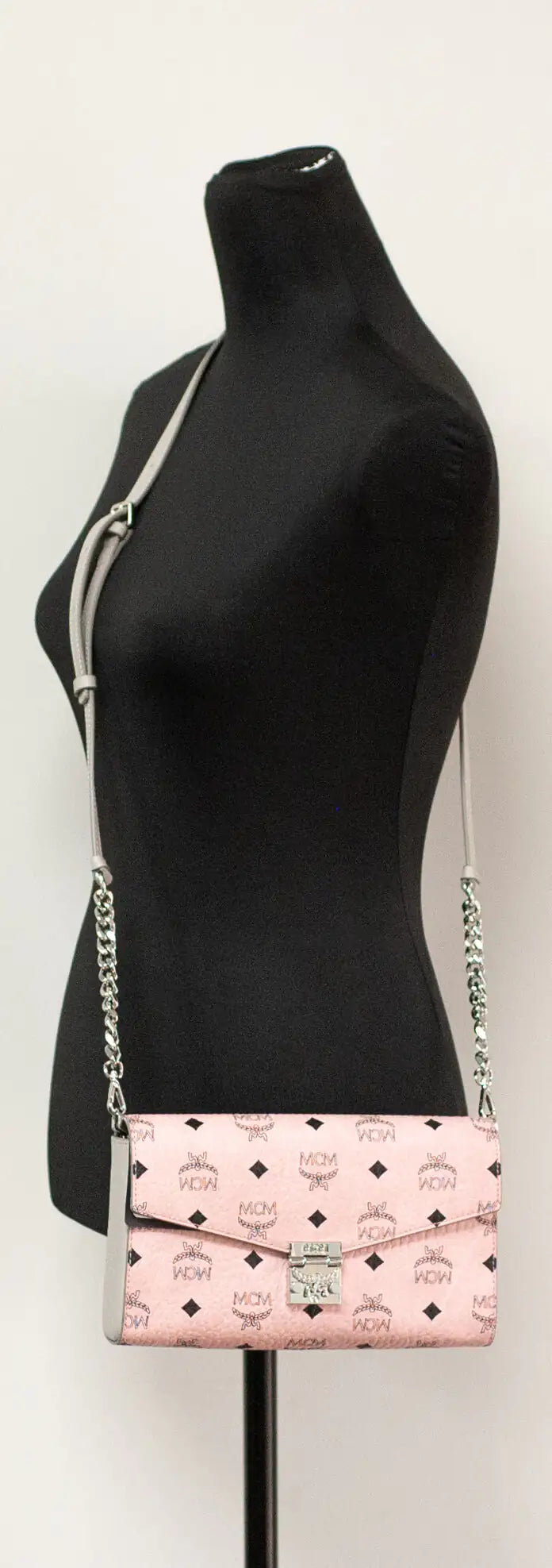 Style: MCM Medium Signature Diamond Logo Clutch Crossbody Bag